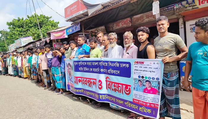 কুমিল্লার মুরাদনগরে মোটরসাইকেল দুর্ঘটনায় দুই তরুণের মৃত্যুর প্রায় এক মাস পর স্থানীয় এক সিএনজি চালকের বিরুদ্ধে ষড়যন্ত্রমূলক মিথ্যা মামলা দায়েরের প্রতিবাদে মানববন্ধন ও বিক্ষোভ মিছিল অনুষ্ঠিত হয়েছে।