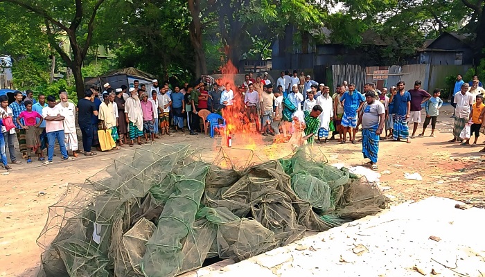 অভিযানে আরও আনুমানিক এক লক্ষ পঞ্চাশ হাজার টাকা মূল্যের নিষিদ্ধ কারেন্ট জাল ও চায়না জাল জব্দ করে তা ধ্বংস করা হয়।