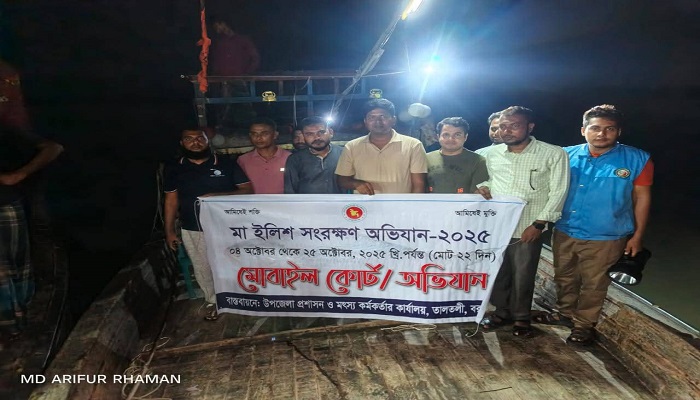 “মা ইলিশ সংরক্ষণ অভিযান–২০২৫” উপলক্ষে বৃহস্পতিবার মধ্যরাতে আমতলী উপজেলা প্রশাসন বিশেষ অভিযান পরিচালনা করেছে। আমতলী উপজেলা নির্বাহী কর্মকর্তা মোঃ রোকনুজ্জামান খানের নেতৃত্বে পরিচালিত এই অভিযানে মা ইলিশ সংরক্ষণ বিষয়ে জনসচেতনতামূলক কার্যক্রমও অনুষ্ঠিত হয়। মৎস্য সুরক্ষা ও সংরক্ষণ আইন, ১৯৫০ অনুযায়ী, ৪ অক্টোবর থেকে ২৫ অক্টোবর ২০২৫ পর্যন্ত মোট ২২ দিন ইলিশ মাছের প্রধান প্রজনন মৌসুমে সারাদেশে ইলিশ আহরণ, পরিবহন, মজুদ, বাজারজাতকরণ ও ক্রয়-বিক্রয় সম্পূর্ণ নিষিদ্ধ।