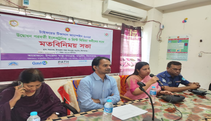 কিশোরগঞ্জের তাড়াইল উপজেলা স্বাস্থ্য কমপ্লেক্সে টাইফয়েড টিকাদান ক্যাম্পেইন’২৫ উদ্বোধন শেষে প্রিন্ট ও ইলেক্ট্রনিক মিডিয়ার সাংবাদিকদের সাথে মতবিনিময় সভা অনুষ্ঠিত হয়েছে।