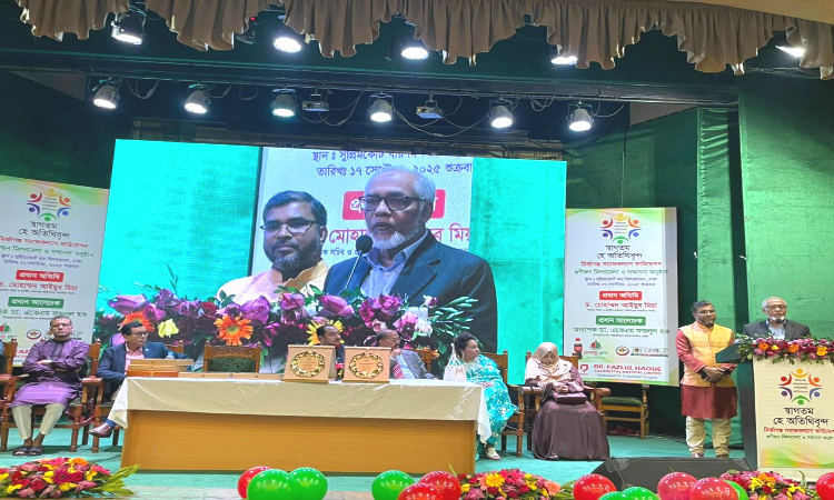 অনুষ্ঠানে প্রধান অতিথি হিসেবে বক্তব্য দিচ্ছেন সাবেক সচিব ও জাতীয় ঐক্যমত্য কমিশনের সদস্য ড. মোহাম্মাদ আইয়ুব মিয়া