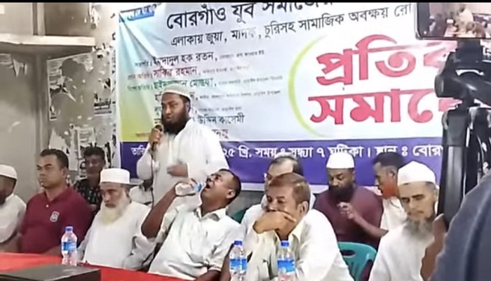 কিশোরগঞ্জের তাড়াইল উপজেলার বোরগাঁও যুব সমাজের উদ্যোগে এলাকায় জুয়া, মাদক, চুরি ও নানা ধরনের সামাজিক অবক্ষয়ের বিরুদ্ধে এক প্রতিবাদ সমাবেশ অনুষ্ঠিত হয়েছে।