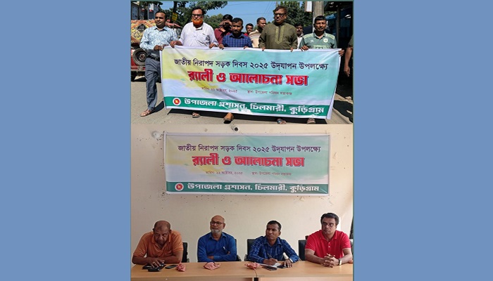 সারা দেশের ন্যায় কুড়িগ্রামের চিলমারীতে ও নিরাপদ সড়ক দিবস- ২০২৫ উপলক্ষে রেলি ও আলোচনা সভা অনুষ্ঠিত।