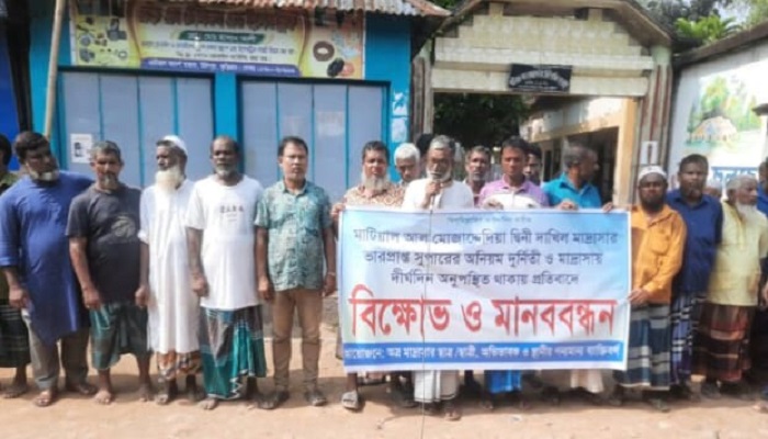মানববন্ধনে বক্তাগণ বলেন, ভারপ্রাপ্ত সুপার আইয়ুব আলী দায়িত্ব গ্রহণের পর থেকে নিজের ইচ্ছামত মাদ্রাসা পরিচালনা করেন, বিভিন্ন ভাবে অর্থ আত্মসাত করেছেন, নিয়মিত মাদ্রাসায় আসেন না মাঝেমধ্যে এসে হাজিরা খাতায় স্বাক্ষর করে যান। এহেন অনিয়ম দুর্নীতিবাজ সুপারকে দ্রুত অপসারণের ব্যবস্থা গ্রহণের মাধ্যমে অত্র প্রতিষ্ঠানটি রক্ষার্থে এবং ধ্বংসের হাত থেকে রেহাই ও শিক্ষার পরিবেশ ফিরিয়ে আনার দাবী করেছেন উর্দ্ধোতন কর্তৃপক্ষের কাছে।