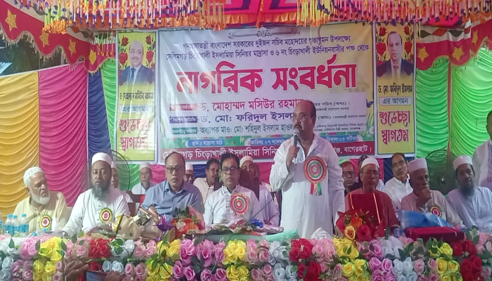 বাগেরহাটের মোরেলগঞ্জ উপজেলার সেলিমগড় চিংড়াখালী ইসলামিয়া সিনিয়র মাদ্রাসা ও ৬নং চিংড়াখালী ইউনিয়নবাসীর যৌথ উদ্যোগে গনপ্রজাতন্ত্রী বাংলাদেশ সরকারের দুইজন অবসরপ্রাপ্ত সচিবকে নাগরিক সংবর্ধনা প্রদান করা হয়েছে।শুক্রবার (৭ নভেম্বর ২০২৫) বিকাল ৩টায় মাদ্রাসা প্রাঙ্গণে এক বর্ণাঢ্য অনুষ্ঠানের আয়োজন করা হয়।