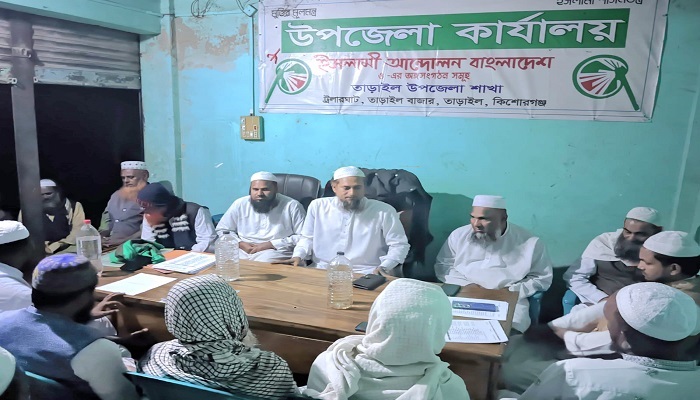 সভাটি সঞ্চালনা করেন ইসলামী আন্দোলন বাংলাদেশ তাড়াইল উপজেলা শাখার সেক্রেটারি হাফেজ মাওলানা শেখ মুহাম্মাদ সাইফুল ইসলাম। সভাপতিত্ব করেন দলটির সহ-সভাপতি ও জাতীয় উলামা মশায়েখ আইম্মা পরিষদ তাড়াইল উপজেলা শাখার সভাপতি মাওলানা আব্দুর রউফ।