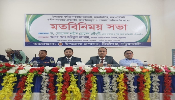 পটুয়াখালীর মির্জাগঞ্জে উপজেলা প্রশাসনের আয়োজনে পটুয়াখালী জেলা প্রশাসক ও জেলা বিজ্ঞ ম্যাজিস্ট্রেট ড. মোহাম্মদ শহীদ হোসেন চৌধুরীর মতবিনিময় সভা অনুষ্ঠিত হয়েছে।