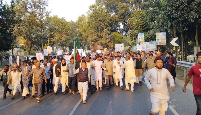 ময়মনসিংহের নান্দাইল আসনে বিএনপির মনোনীত প্রার্থী ও আহবায়ক ইয়াসের খান চৌধুরীকে ধানের শীষ প্রতীকে বিপুল ভোটের ব্যবধানে বিজয়ী করতে আজ শনিবার উপজেলা পৌর বিএনপির অঙ্গ ও সহযোগী সংগঠনের নেতা-কর্মীরা ধানের শীষ প্রতীকে মিছিল করেছে।
