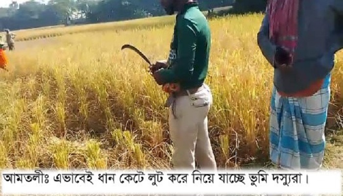 কৃষক আব্দুল মান্নান আকনের জমির ধান মনিরুল আকনের নেতৃত্বে ভুমি দস্যুরা কেটে লুট নিয়েছে বলে অভিযোগ পাওয়া গেছে। জমির মালিক আব্দুল মান্নান আকন এমন অভিযোগ করেছেন। ঘটনা ঘটেছে বুধবার দুপুরে আমতলী উপজেলার পশ্চিম সোনাখালী গ্রামে।