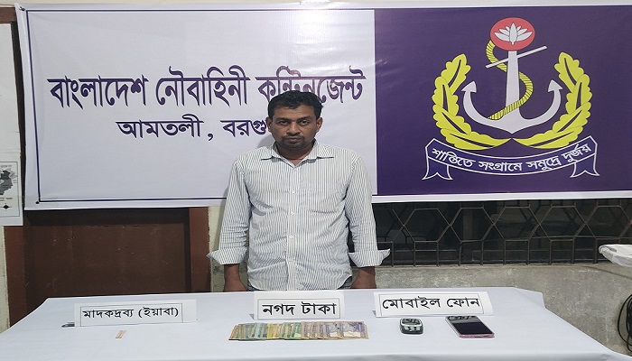 নৌবাহিনী সূত্র জানায়, অভিযানে মৃত বারেক হাওলাদারের ছেলে রাসেল হাওলাদার (৪০) কে তার নিজ বসতবাড়ি থেকে আটক করা হয়। আটককৃত রাসেল দীর্ঘদিন ধরে এলাকায় মাদক ব্যবসার সঙ্গে জড়িত এবং স্থানীয়ভাবে একজন শীর্ষ মাদক কারবারি হিসেবে পরিচিত।
