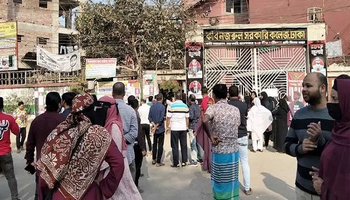 সকাল সাড়ে ৭টা বাজতেই কেন্দ্রগুলোতে ভোটারদের দীর্ঘ লাইন দেখা যায়। শহীদ সোহরাওয়ার্দী কলেজ কেন্দ্রে লাইনের শুরুতে থাকা এক মধ্যবয়সী ভোটার জানান, দিনের ব্যস্ততা ও ঝামেলা এড়াতেই তিনি আগেভাগে চলে এসেছেন। সকাল থেকেই রাজনৈতিক দলগুলোর পোলিং এজেন্টদের উপস্থিতি এবং প্রার্থীদের বসানো বুথগুলোতে কর্মীদের ব্যস্ততা ছিল চোখে পড়ার মতো। শুরুতে পরিবেশ কিছুটা নীরব থাকলেও সময় বাড়ার সঙ্গে সঙ্গে বাড়তে থাকে মানুষের ভিড়।