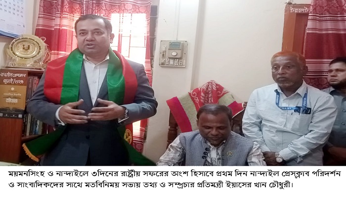গণপ্রজাতন্ত্রী বাংলাদেশ সরকারের তথ্য ও সম্প্রচার প্রতিমন্ত্রীর দায়িত্ব পাওয়ার পর প্রথম বারের মত ৩দিনের সরকারী সফরে নিজ নির্বাচনী এলাকায় আসেন ইয়াসের খান চৌধুরী। রাষ্ট্রীয় সফরের প্রথম দিন বৃহস্পতিবার প্রতিমন্ত্রী নান্দাইলে আগমন করে জেলা পরিষদ ডাক বাংলোতে পৌছলে উপজেলা নির্বাহী অফিসার ফাতেমা জান্নাত ও নান্দাইল মডেল থানার অফিসার ইনর্চাজ আল আমিন তাঁকে ফুলেল শুভেচ্ছা জানান।