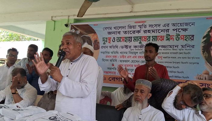অনুষ্ঠানে প্রধান অতিথি হিসেবে উপস্থিত থেকে বক্তব্য দেন বিএনপির কেন্দ্রীয় তাতীদলের সিনিয়র যুগ্ম আহ্বায়ক ও বেগম খালেদা জিয়া স্মৃতি সংসদের মুখ্য সমন্বয়ক ড. কাজী মনিরুজ্জামান মনির। তিনি বলেন, “সমাজের সচ্ছল মানুষের উচিত অসহায়দের পাশে দাঁড়ানো। ঈদের আনন্দ সবার মাঝে ছড়িয়ে দিতে এ ধরনের উদ্যোগ গুরুত্বপূর্ণ ভূমিকা রাখে।” তিনি ভবিষ্যতেও এ ধরনের মানবিক কার্যক্রম অব্যাহত রাখার আশ্বাস প্রদান করেন।