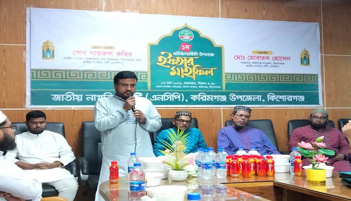 সভায় সভাপতিত্ব করেন করিমগঞ্জ উপজেলা এনসিপির সভাপতি মো. মোবারক হোসেন। অনুষ্ঠানে আরও উপস্থিত ছিলেন কিশোরগঞ্জ জেলার এনসিপির সাংগঠনিক সম্পাদক ইকরাম হোসেনসহ স্থানীয় রাজনৈতিক ও সামাজিক ব্যক্তিবর্গ এবং দলের নেতাকর্মীরা। ইফতারের আগে দেশ, জাতি ও মুসলিম উম্মাহর শান্তি ও সমৃদ্ধি কামনায় বিশেষ দোয়া ও মোনাজাত করা হয়।