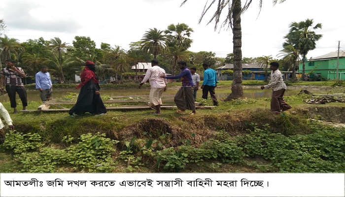 তালতলীতে জমি দখলে শতাধিক ভাড়াটিয়া সন্ত্রাসী, ভিডিও করতে গেলে সাংবাদিককে হত্যার হুমকি