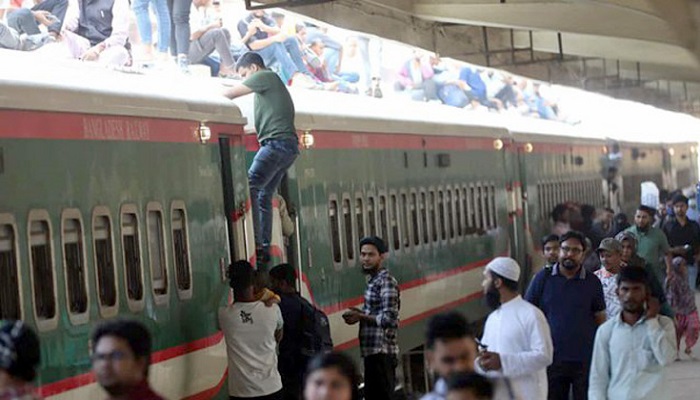 এদিন ভোর থেকেই পরিবার-পরিজনসহ যাত্রীরা স্টেশনে আসছেন। কেউ ব্যাগ হাতে, কেউ আবার ছোট শিশুদের সঙ্গে নিয়ে দীর্ঘ যাত্রার প্রস্তুতি নিয়ে অপেক্ষা করছেন ট্রেনের জন্য। দিনের আলো ফোটার সঙ্গে সঙ্গে কমলাপুর রেলওয়ে স্টেশনে বেড়েছে ঘরমুখো মানুষের ভিড়। ট্রেনের ভেতরে জায়গা না পেয়ে অনেক যাত্রী ট্রেনের ছাদে উঠে নিজ নিজ গন্তব্যে রওনা হয়েছেন।