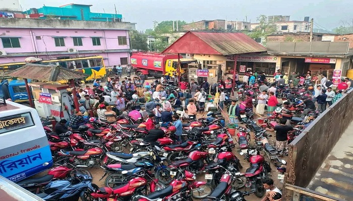 শিবগঞ্জে তেলের তীব্র সংকট: ভোর রাত থেকেই পাম্পে লাইন, চরম ভোগান্তিতে জনসাধারণ