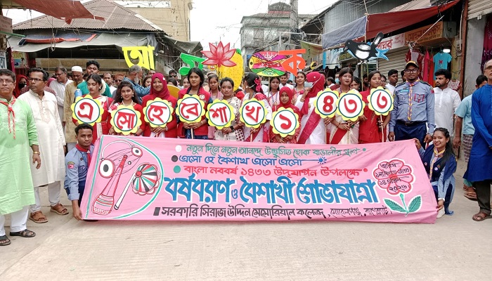 মঙ্গলবার (১৪ এপ্রিল) সকাল ১০টায় কলেজ প্রাঙ্গণ থেকে শুরু হওয়া বর্ণাঢ্য শোভাযাত্রাটি ক্যাম্পাস ও আশপাশের সড়ক প্রদক্ষিণ করে। শোভাযাত্রায় শিক্ষার্থীরা ঐতিহ্যবাহী বাঙালি সাজে অংশ নিয়ে নববর্ষের আনন্দকে আরও প্রাণবন্ত করে তোলে।