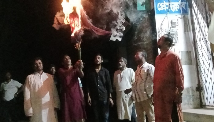 মোরেলগঞ্জে রাসেদ প্রধানের কুশপুতুল দাহ, ৯০ ছাত্রদল ফোরামের তীব্র প্রতিবাদ