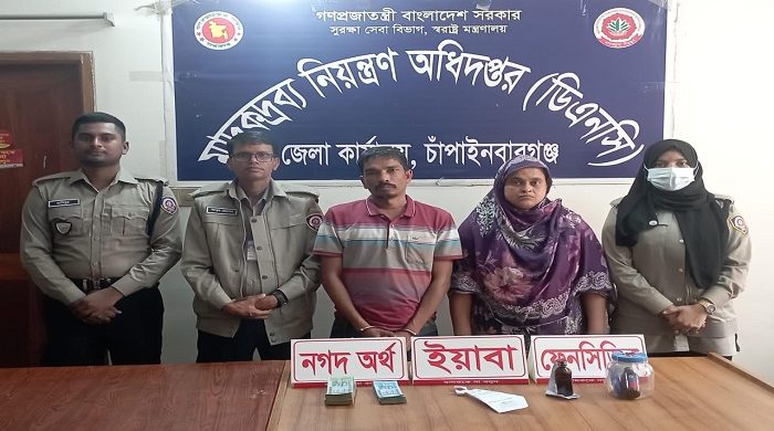 চাঁপাইনবাবগঞ্জে মাদকদ্রব্য নিয়ন্ত্রণ অধিদপ্তরের বিশেষ টাস্কফোর্স অভিযানে যাবজ্জীবন সাজাপ্রাপ্ত এক পলাতক আসামিসহ দুইজন মাদক কারবারিকে গ্রেফতার করা হয়েছে। বৃহস্পতিবার (৫ মার্চ) সকাল ৭টা ৩০ মিনিট থেকে ৮টা ১০ মিনিট পর্যন্ত